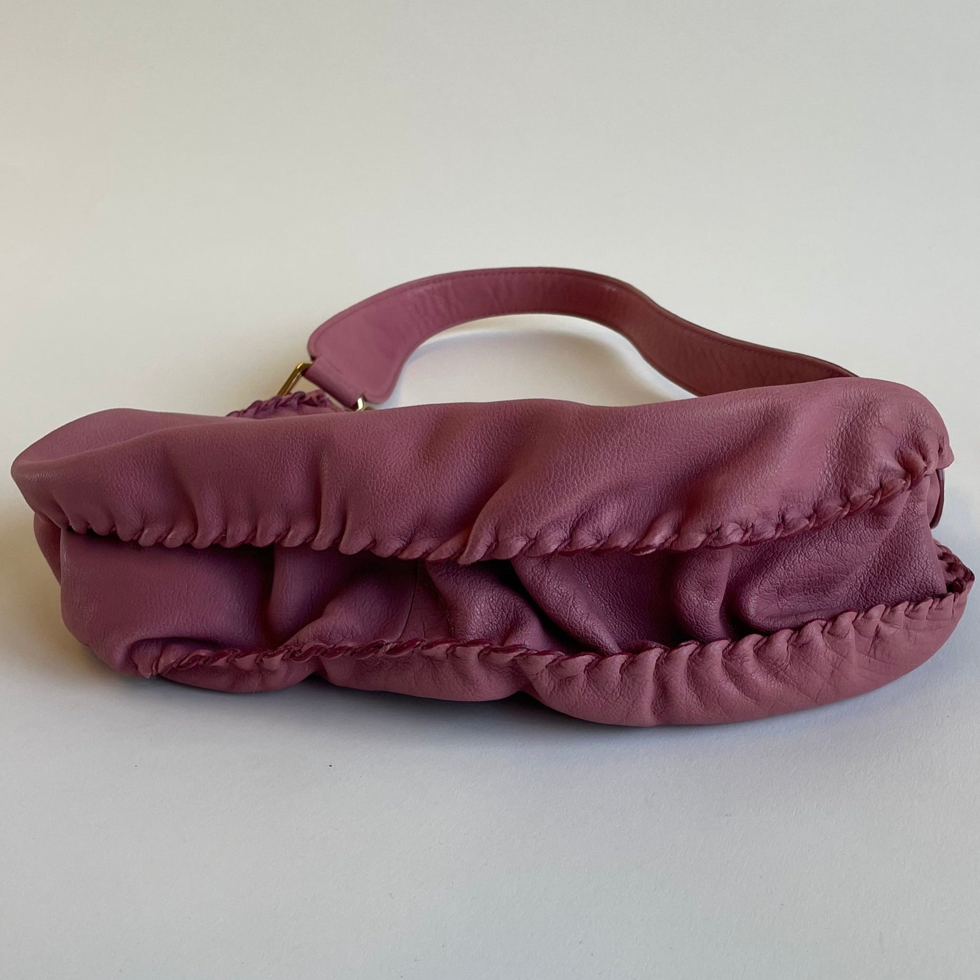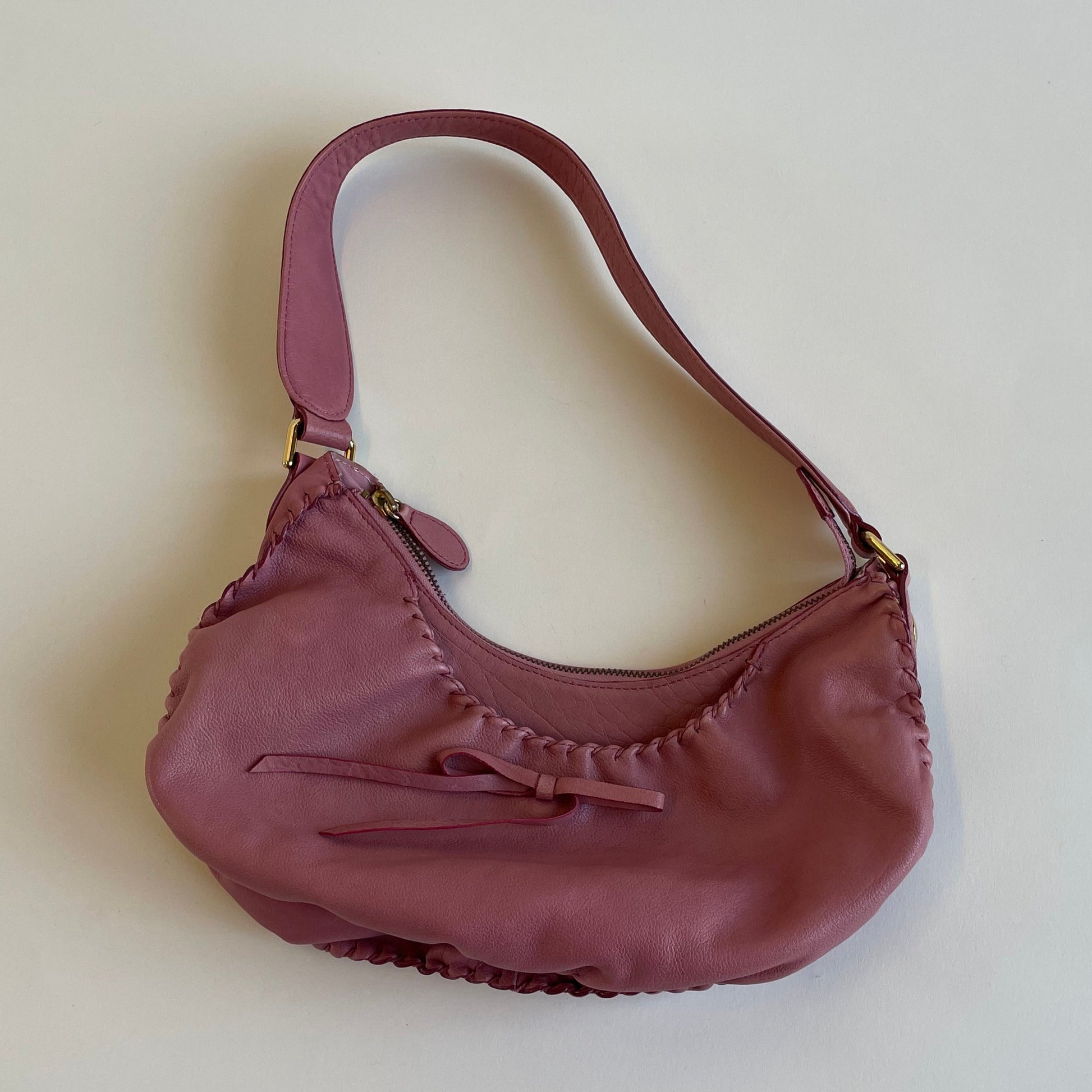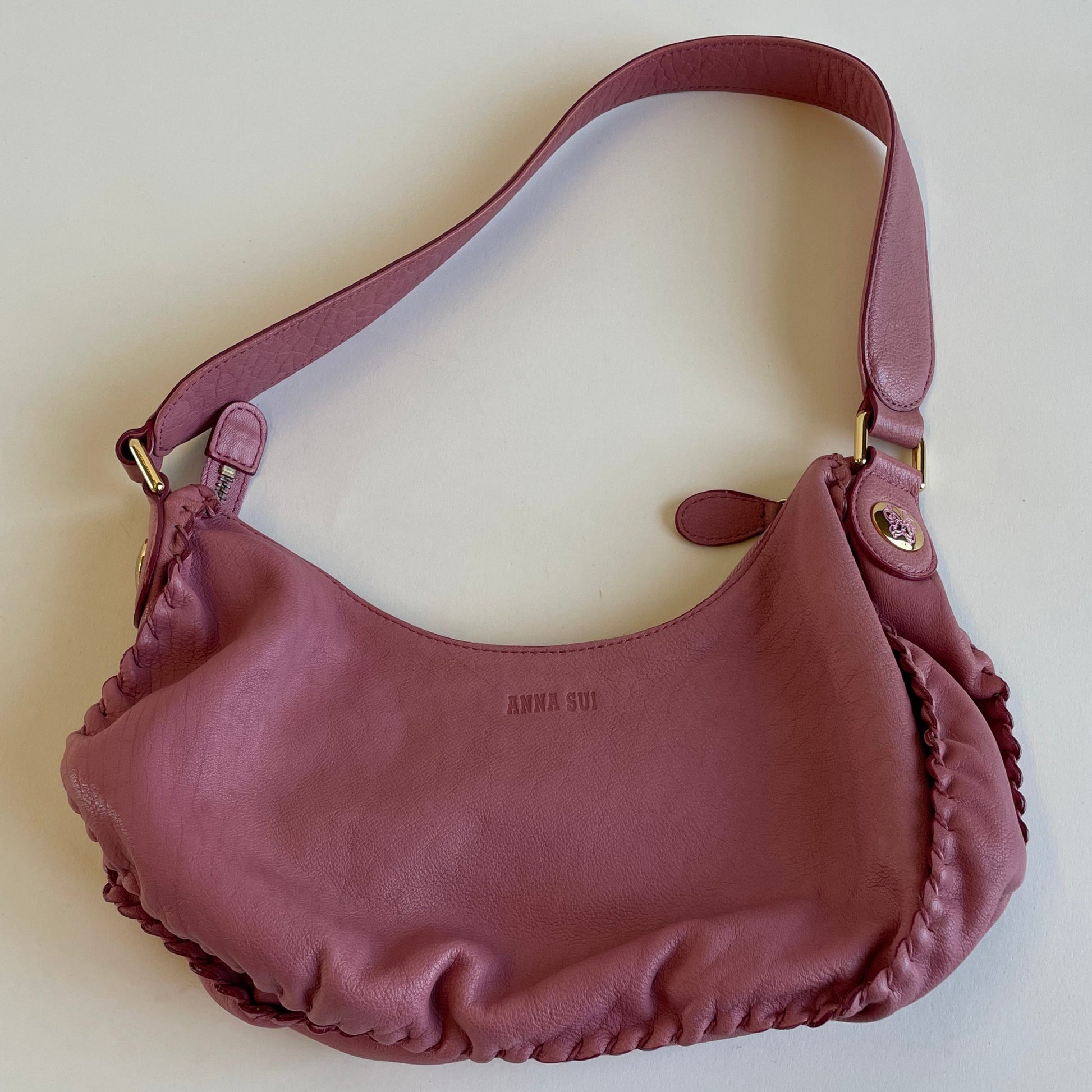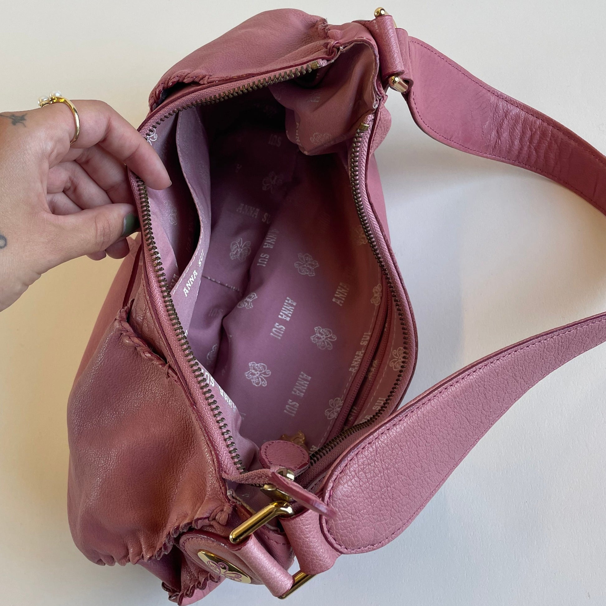 anna sui pink leather bag with bow detail. so precious!! has an adorable butterfly charm on the inner zipper.