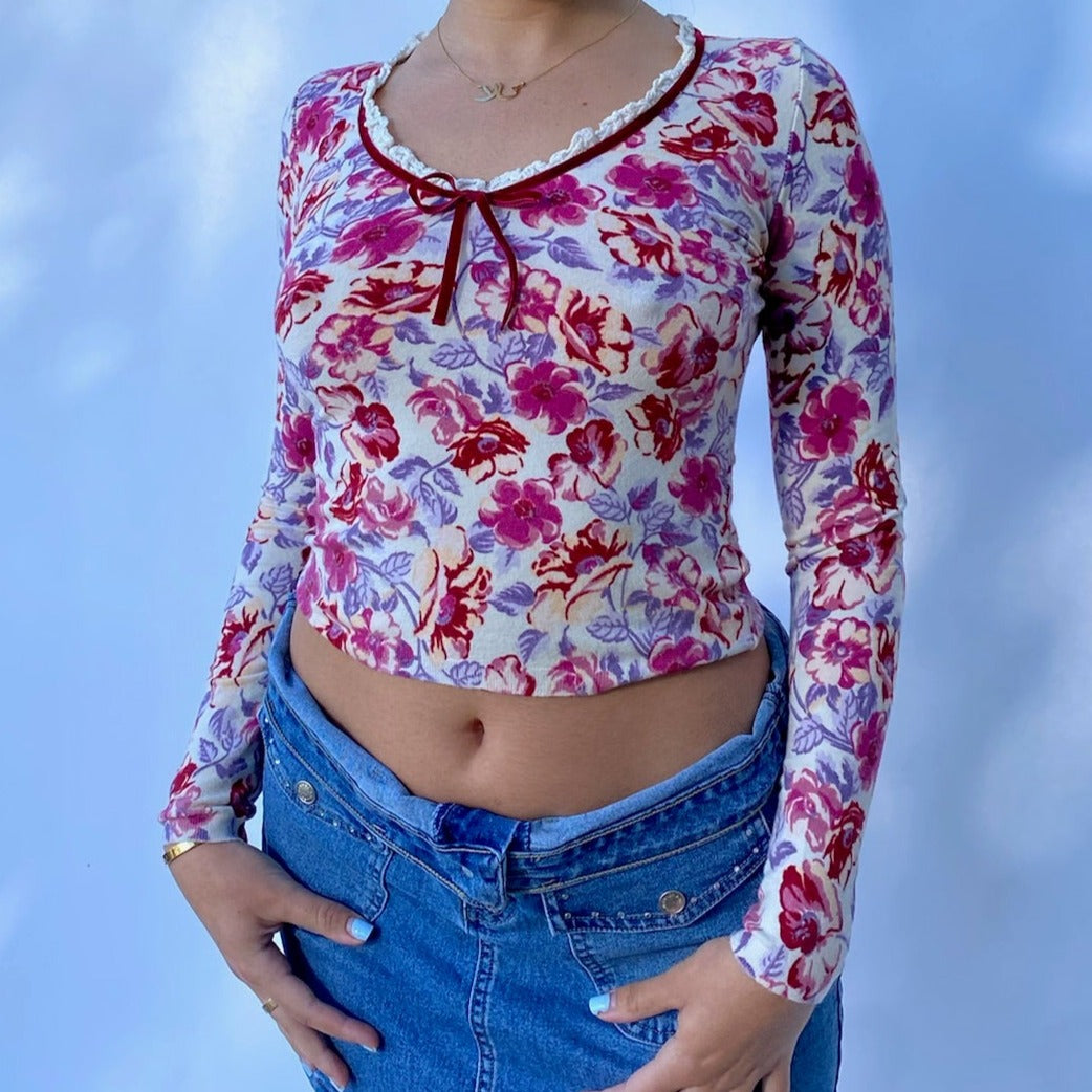 floral blumarine long sleeve. extremely soft and comfortable material. no size labeled so please refer to measurements below: