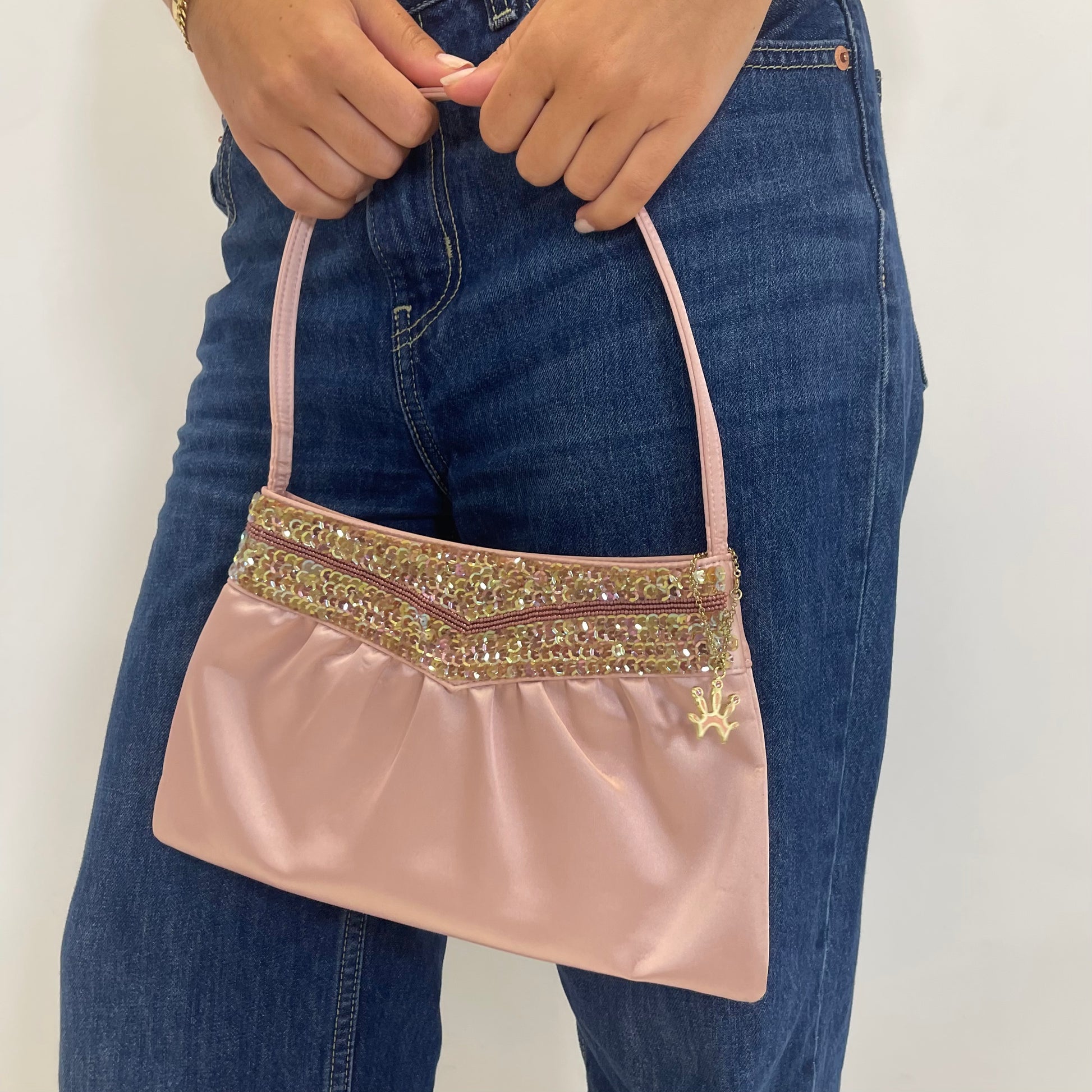 pink mini rebecca taylor shoulder bag with sequin detailing. please refer to measurements below for sizing: