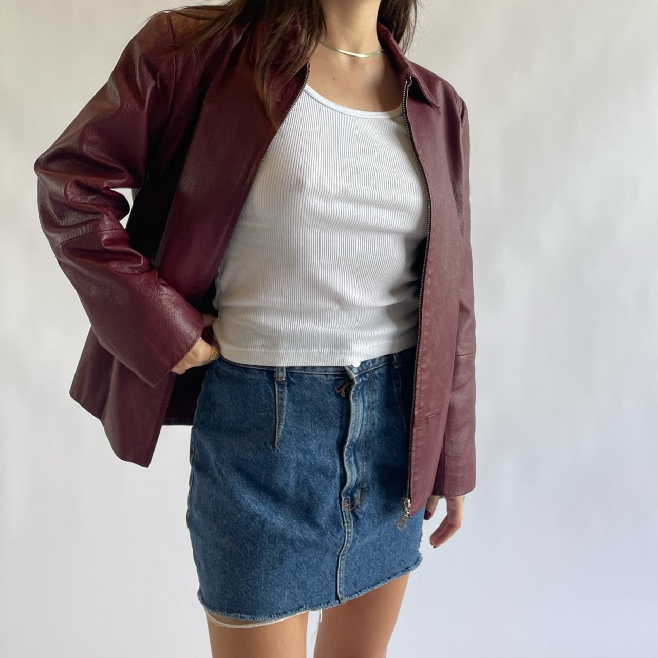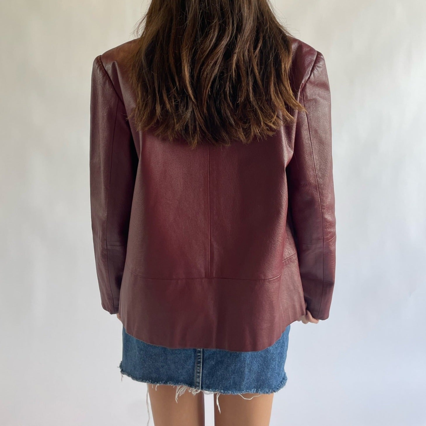 dreamy dark red jacket. so cute for a night out. labeled a size medium but please refer to measurements below: